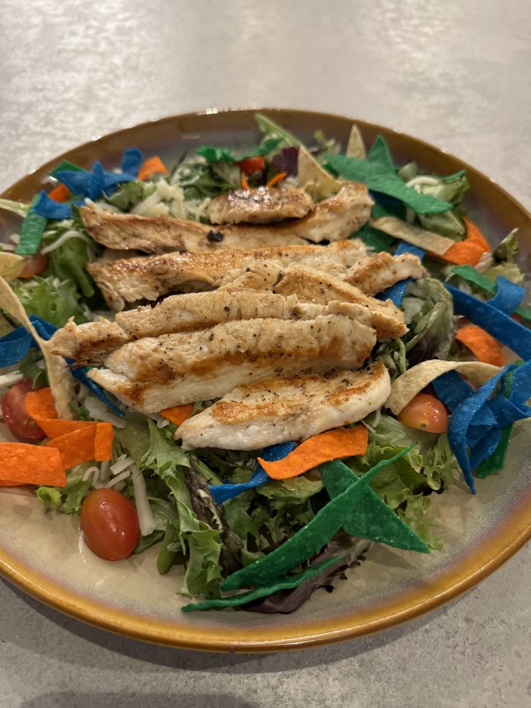 Your choice of Grilled Chicken or Seasoned Steak on a bed of Mixed Greens, Cherry Tomatoes, Cheese and Tortilla Strips.